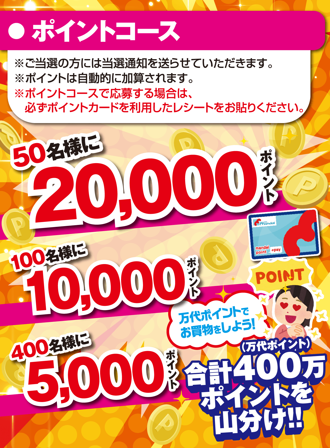 対象商品500円(税抜き)以上を含む、合計金額1,000円(税抜き)以上のレシートで応募!